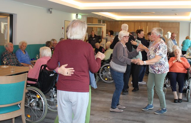 Die stimmungsvolle Live-Musik von Marco Zwetzschler ließ den Nachmittag wie im Fluge vergehen. Mit seinen altbekannten Schlagern und Walzermelodien sorgte er für gute Stimmung. Unsere Bewohner*innen und Angehörige stimmten freudig mit ein. Es wurde kräftig geschunkelt und getanzt. Wir danken unserem Förderverein für die Unterstützung und unseren ehrenamtlichen Helferinnen, die zum Tanz aufgefordert haben.